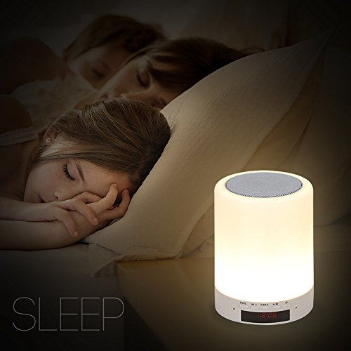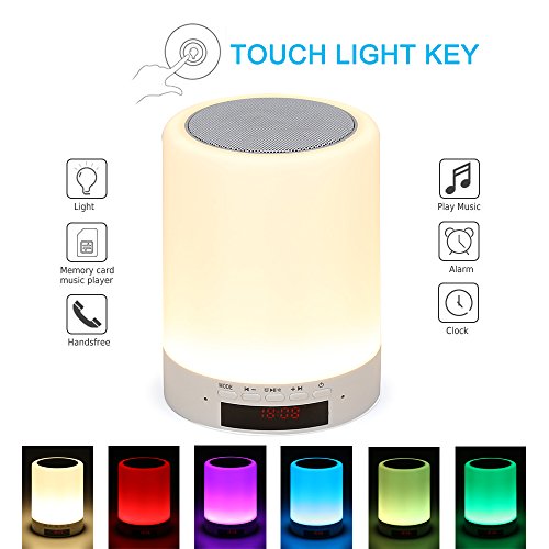 Wake Up Light Lampada da Comodino, Sensore Touch Sulla Lampada + Luce Multicolore Dimmerabile Notte e Bluetooth Speaker, Orologio con Sveglia, mood light per creare atmosfera