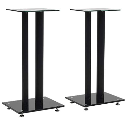 Wakects Supporti per Casse Acustiche a Colonna, 2 Pezzi Supporti per Altoparlanti in Vetro Temperato, Stand Casse Supporto per Altoparlante, Nero, 30 x 25 x 61 cm
