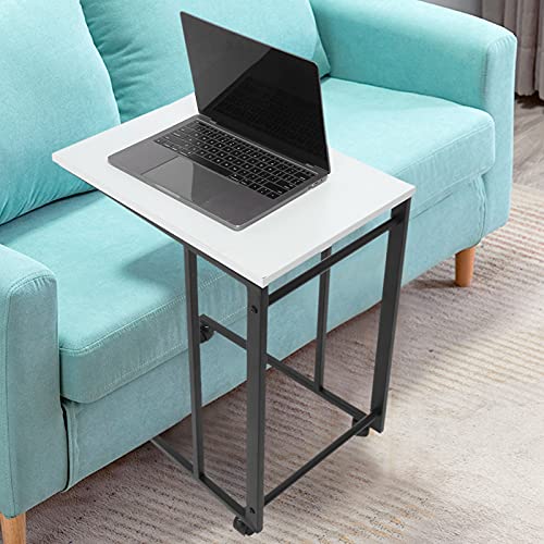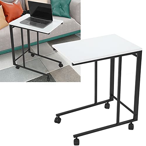 Wakects Tavolino Laterale Divano, Tavolino a Forma di C, Tavolino con Ruote per Laptop per Divano Salotto, Dormitorio, Soggiorno, Ufficio, Bianco, 50x35x60 cm
