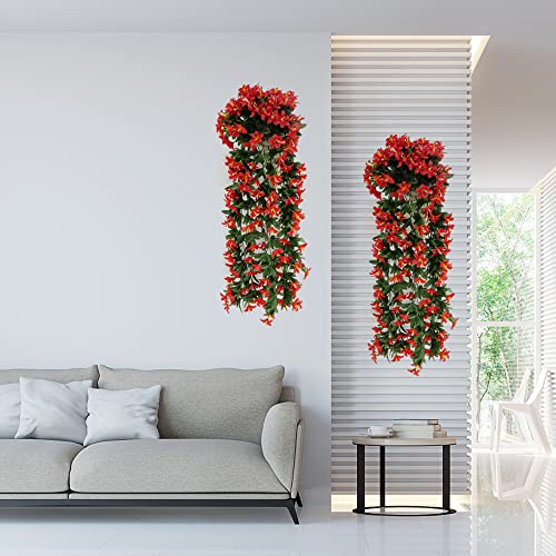 WakiHong 2 Pezzi Fiori Pendenti Rosso Simulazione del Fiore di Glicine Fiori Finti Pendenti per Casa Hotel Matrimonio Giardino Parete Balcone Decorazione