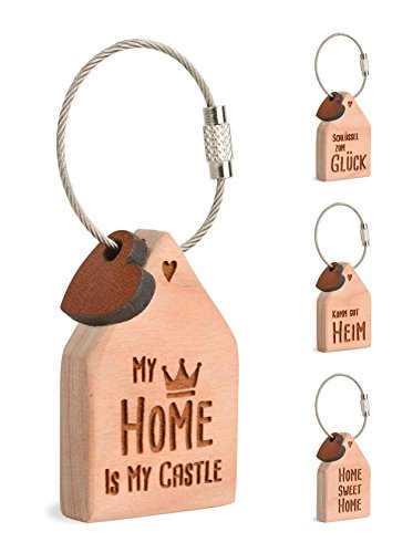 Waldfabrik Black Forest Portachiavi casa in Legno di ciliegio con Incisione Laser, Ideale Come Idea Regalo, Scritta a Scelta My Home is My Castle 14,5 x 12,5 cm