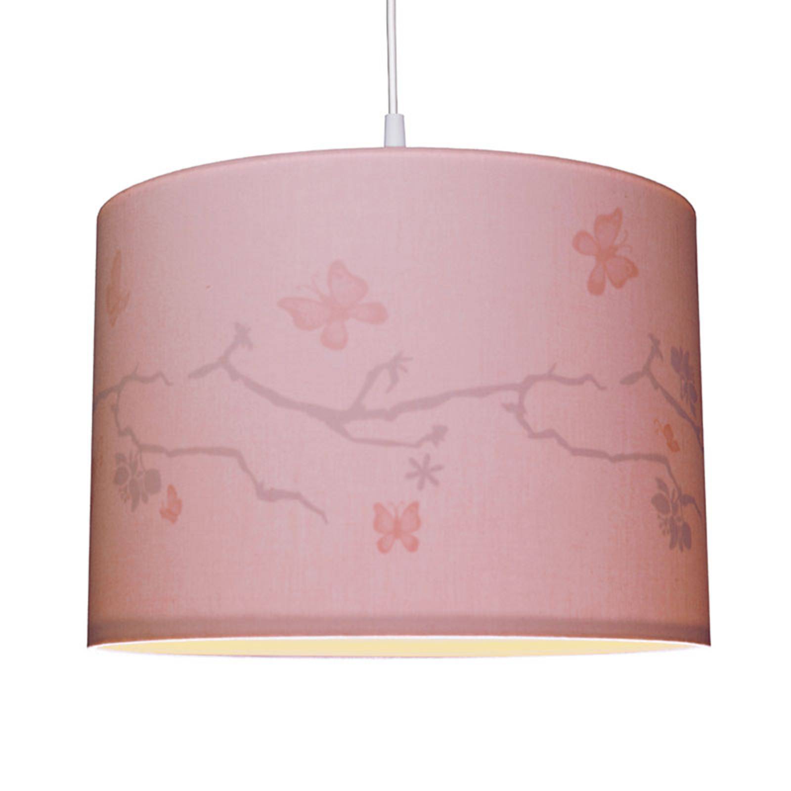 Lampada a sospensione per bambini Carla di colore rosa, con fantasia stampata all'interno Di giorno la lampada a sospensione Carla è una presenza piuttosto sobria: un paralume cilindrico, lavorato a mano, in puro cotone di colore rosa. Il lato interno invece ha una copertura bianca decorata da motivi floreali con rami e farfalle. Quando si accende la luce, prendono vita questi disegni incantevoli che filtrano dalla lampada con un fascino assolutamente decorativo e romantico - non solo in una camera di bambini. Come tutte le altre lampade di questo produttore, anche questa viene costruita in Germania. Il produttore cura con la massima attenzione la qualità dei materiali. Viene riposta grande cura nella scelta di materiali a misura di bambini, come tessuti, legno o plastiche senza cadmio.