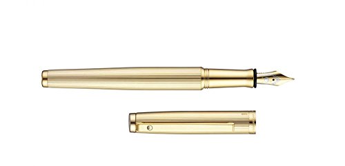 Waldmann 4754 - Penna stilografica Tuscany, pennino M, design a righe, colore: Oro
