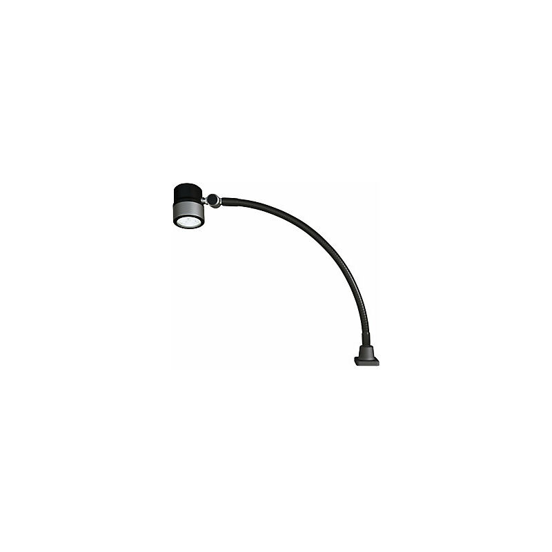 Lampada a LED per macchinari con braccio flessibile, 8 W, spot con angolo di emissione di 40°. Fornitura = montato. Potenza = 8 Watt. Lampadina = LED. Tensione di alimentazione = 12 - 28 V, AC / 12 - 40 V, DC. Colore = nero. Grado di protezione = IP67. Cavo di collegamento = 3.2 m. Diametro paralume = 82 mm. Durata = 60000 ore. Flusso luminoso = 550 Lumen. Altezza paralume = 99 mm. Peso = 1.8 kg. Colore della luce = bianco neutro. Temperatura di colore = 5000 K. Versione industriale di alta qualità, LED ad alta potenza per la massima luce. In spazi ristretti, la lampada può essere posizionata con precisione grazie al tubo flessibile. Protezione antipolvere ed antispruzzo. Guarnizione Viton® per garantire un elevato grado di protezione. Dimmerazione continua e senza sfarfallio (commutabile). A scelta con luce a fascio stretto o largo. Resistente a molte sostanze come oli o lubrorefrigeranti. Tecnologia LED durevole che non richiede manutenzione. Corpo in alluminio anodizzato nero e