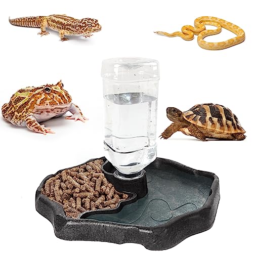 Facile Da Pulire -- Questa ciotola per l'alimentazione della tartaruga rettile presenta un design staccabile, devi solo separare la bottiglia e la base, quindi lavarli separatamente. Se riesci a pulirlo con un pennello, è garantito che rimarrà pulito a lungo!
