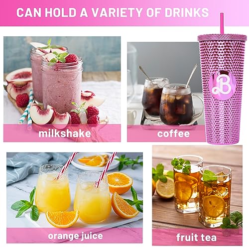 Aspetto elegante: la tazza con cannuccia ha un design elegante e di bell'aspetto con diamanti lucidi, che è individuale ed elegante e molto attraente per gli altri. Ha anche un'ottima sensazione di riduzione della pressione e un effetto termoisolante. È ottimo da mantenere.