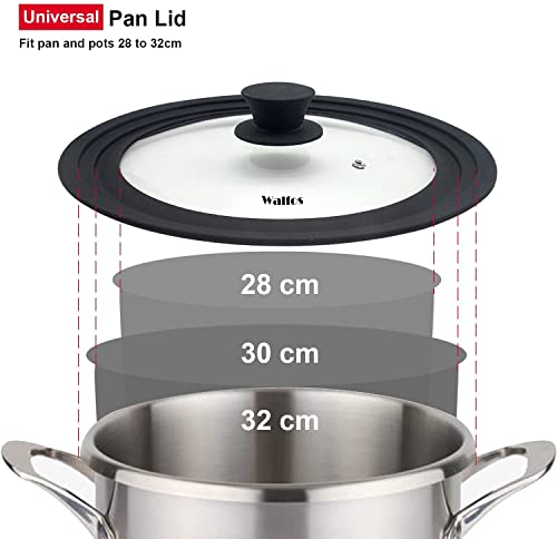 Walfos Coperchio universale, coperchio per pentola con bordo in silicone, resistente al calore, adatto a 28/30/32 cm, utensili da cucina, pentole, padelle e padelle