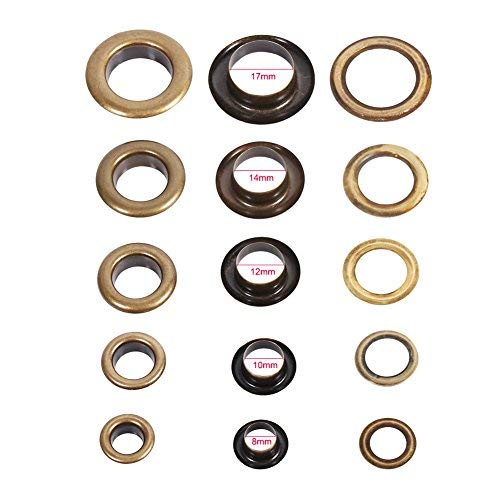 Ci sono 20 sets totali o 100 insiemi gli occhielli e le rondelle in un pacchetto che possono soddisfare i vostri bisogni di base per fare dell'artigianato. Diametro interno: 8mm (0.31 pollici)/(0.39 pollici)/12mm (0,47 pollici)/14mm (0.55 inch)/17mm (0,67 pollici) (facoltativo), è possibile scegliere il tipo necessario per i vostri progetti