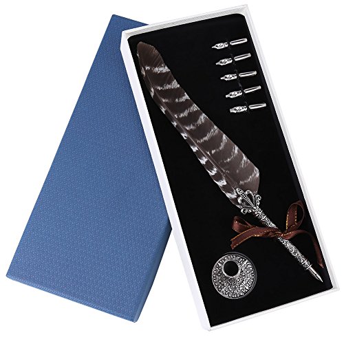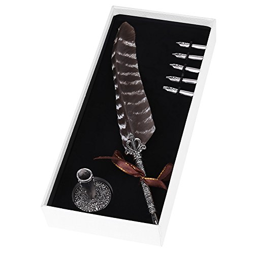 QUANTITÀ: Include Feather Dip Pen (con pennino), 5 Punta della penna e Portapenne, in grado di soddisfare le diverse esigenze e facilmente per l'uso.