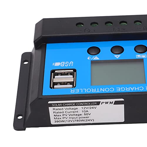 Walfront Regolatore di Carica Solare DC 12V/24V (390W/780W) Regolatore di Pannello Solare MPPT per Luce Stradale a LED Scarica Intelligente di Carica con Doppia Porta USB Display LCD (20A)