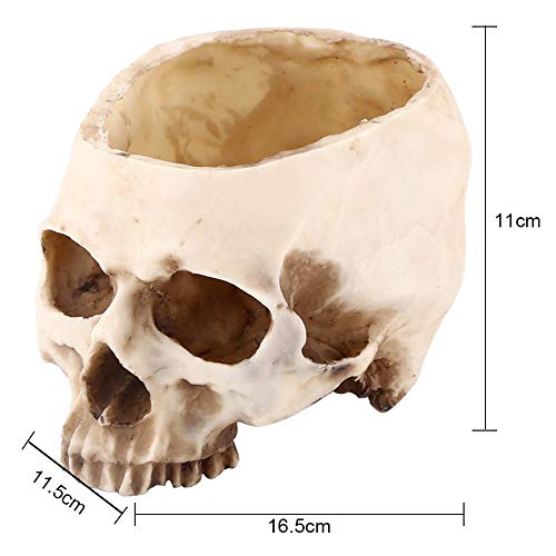 Walfront Testa di teschio in resina artificiale, decorazione di Halloween Candy Bowl, vaso di fiori giardino fioriera casa bar decorazione da tavolo