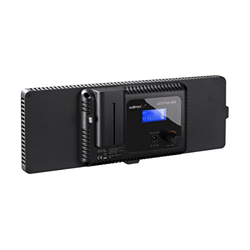 Walimex Pro Soft Led 200 Flat Daylight - Alloggiamento In Alluminio, 5600K, 16 Watt, Cri 95, Luce Molto Morbida, Di Alta Qualità, Con Testa A Sfera, Alimentatore, Cavo, Caricabatterie E Borsa