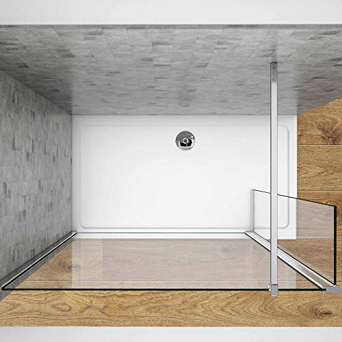 Walk In 120x200cm più Paretina Mobile Da 30cm Vetro 8mm Temperato Trasparente Anticalcare Con Barra Stabilizzatrice da 90 cm