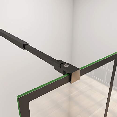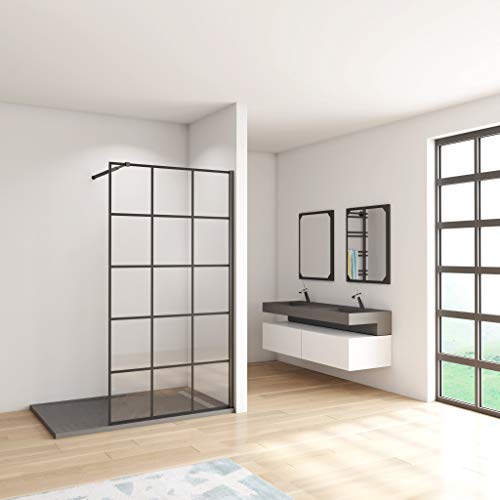 Walk In Doccia Misura 110x200cm Parete Fissa in Vetro Temperato 8 mm Anticalcare Serigrafato Nero con Riquadri Barra Stabilizzatrice da 73-120cm Telaio Nero Opaco