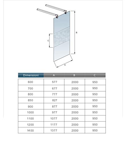 Parete doccia in cristallo temperato anti-frantumi striscia centrale opaca da 8 mm con trattamento anticalcare;