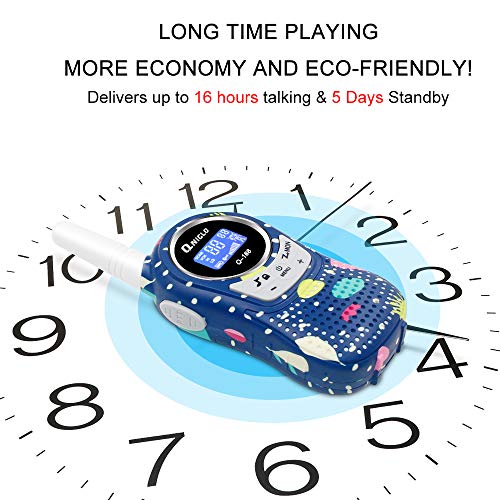 【WALKIE TALKIE RICARICABILI RIPRODUZIONE A LUNGO TEMPO】 Walkie talkie Bambini ricaricabili 2 Way Radio è dotato di una batteria ricaricabile agli ioni di litio che supporta oltre 16 ore di conversazione/5 giorni in standby. Walkie talkie ricaricabili per bambini si caricano semplicemente tramite un cavo micro USB (incluso). Bambini walky talky ricaricabili non hanno bisogno di cambiare frequentemente le batterie. PIÙ ECONOMIA ED ECOLOGICA!
