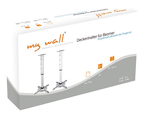 My Wall H16-4L - Supporto da soffitto per proiettori, portata 35 kg, distanza dal soffitto: 400-470-550-620 mm, colore: Argento