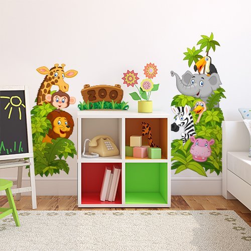 Wall art R00316 Adesivo da Parete per Bambini, Camera da Letto Zoo, 30 x 75 x 0,1 cm, Multicolore