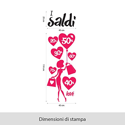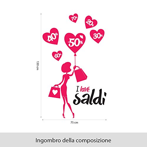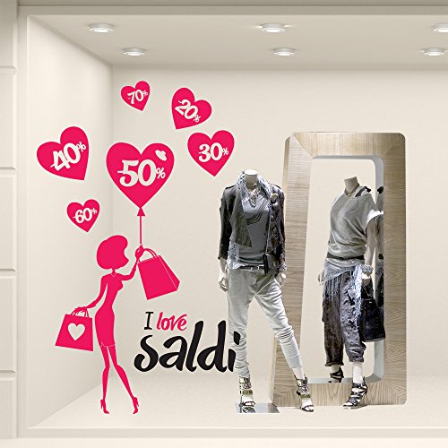 Wall art VSD0598 Adesivi Murali - I Love Cuori - Misure 75x120 cm - Nero e Fucsia - Vetrofanie Invernali, vetrine Negozi, Stickers, Adesivi