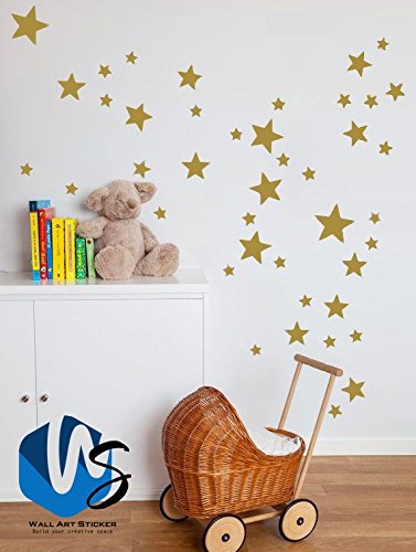 Walldesticker - Adesivi murali assortiti, per cameretta dei bambini, decorazione da camera da letto, in vinile (Confezione da 55) oro
