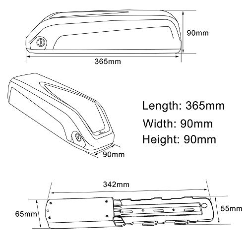 【Uscita】 36V10AH, per motore 200-750 W. Massima corrente di scarica costante: 25A. Caricabatterie: spina UE 42V / 2A. Connettore di scarico Small Bulllet predefinito. Tempo di ciclo: 800 ~ 1000 volte. Dimensioni: 365 * 90 * 90 mm = 14,37 x 3,54 * 3,54 pollici