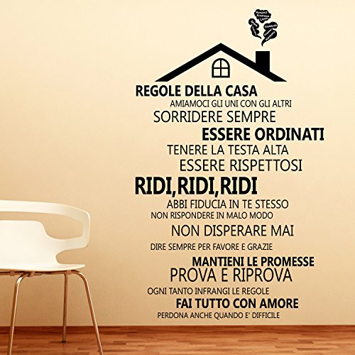 Wallflexi - Adesivi da parete "Regole della casa 2 - Italian", rimovibili autoadesivi, per soggiorno, cucina, ufficio, ristorante, bar, caffetteria, hotel, decorazione per la casa, multicolore