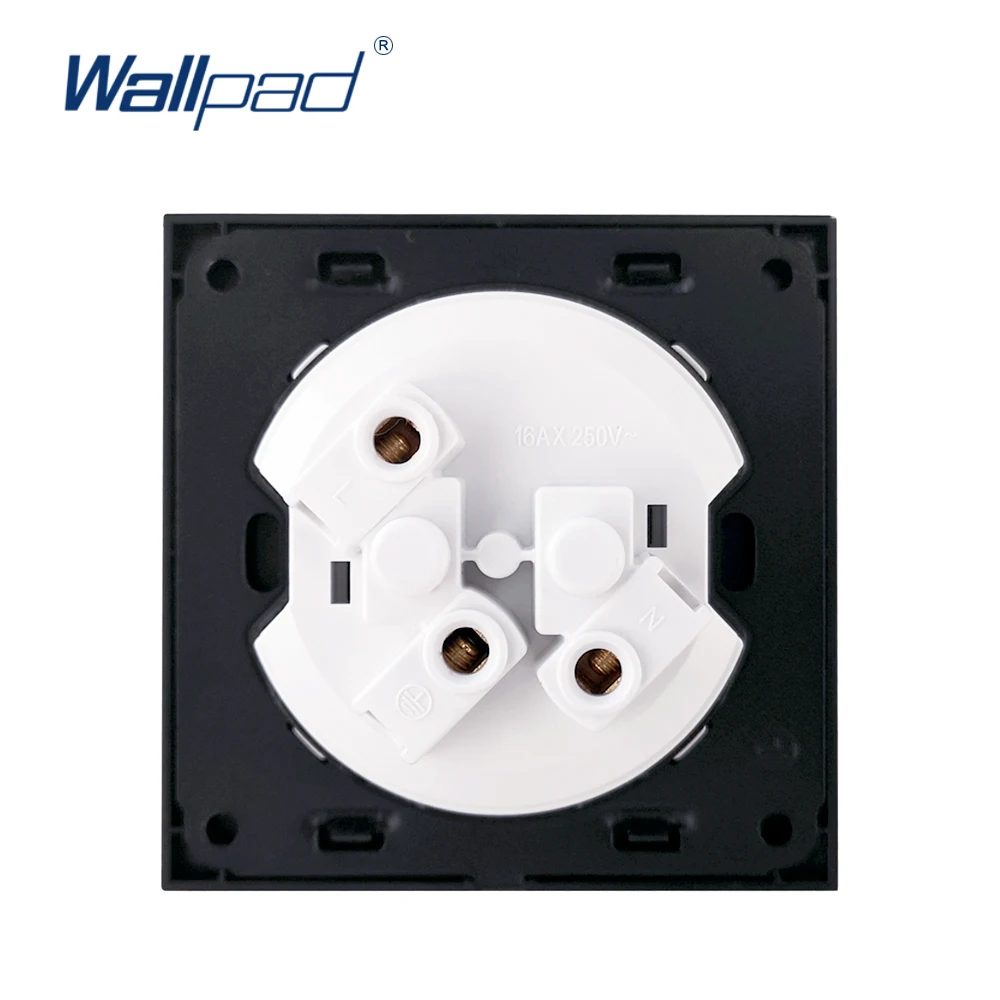 Wallpad L6 Black French Wall Socket Tempered Glass Panel Electrical Power Outlet 16A Round Design