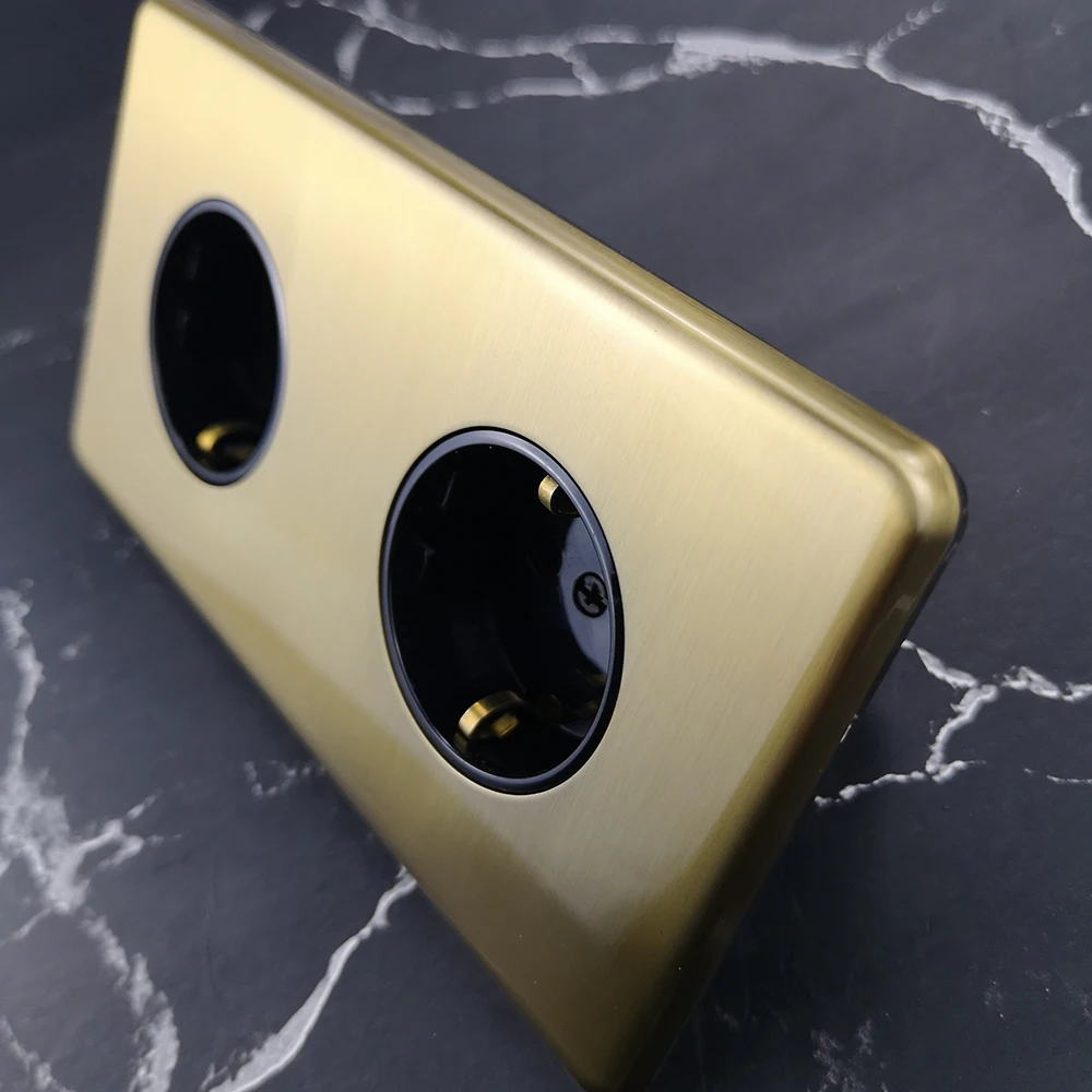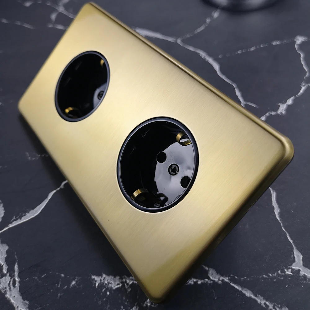 Wallpad Z6 Double EU Wall Power Socket Electrical Outlet with Claws Antique Brass Stainless Steel Plate, Fit EU Box