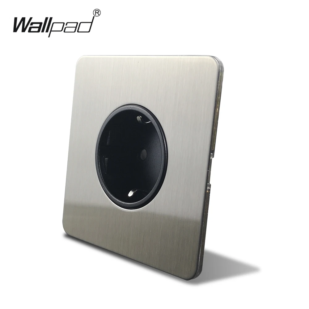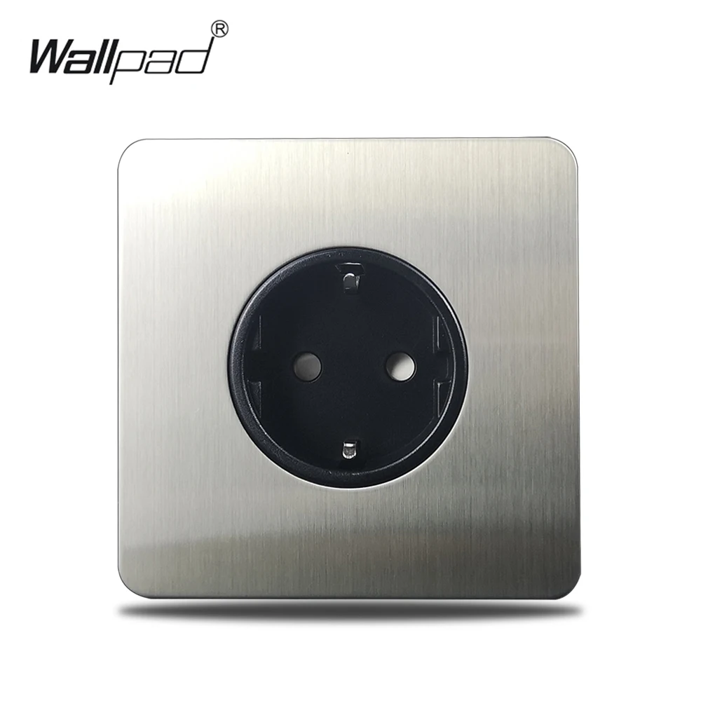 Wallpad Satin Chrome EU Socket Wall Electric Outlet Brushed Silver Stainless Steel Panel H6 Series