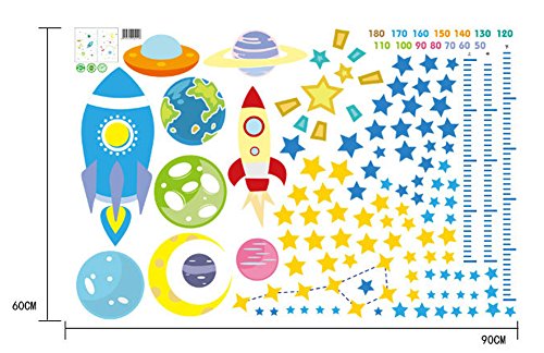 Wallpark Cartone animato Spazio Universo Razzo Stelle Luna Removibile Adesivi Murali, Altezza Misura con Metri Adesivi da Parete, Bambini Camera Vivai DIY Arte Decorativo Adesivo Murale