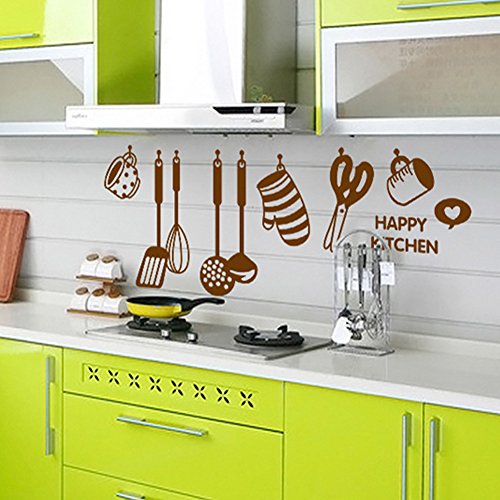 Wallpark Cartone Animato Utensili da Cucina Felice Cucina Removibile Adesivi Murali Adesivi da Parete, Soggiorno Camera da Letto Casa DIY Arte Decorativo Adesivo Murale