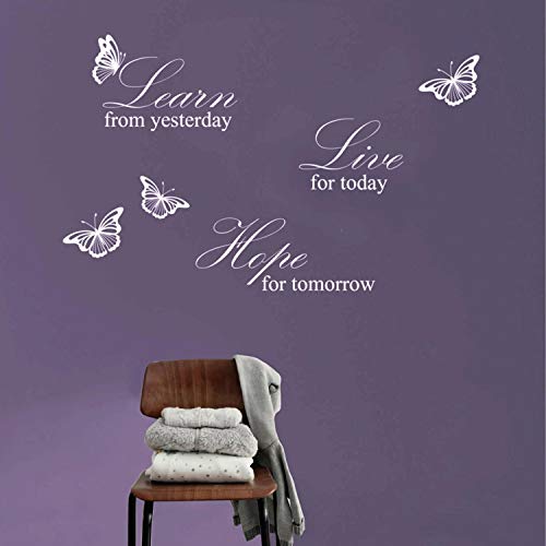 WALPLUS - Adesivi per Parete in PVC Learn Live Hope, Carta per Decalcomanie, Decorazione Artistica, Colore: Bianco