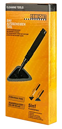 Walser CarComfort pulitore Parabrezza Auto, 5 in 1 Strumento di Pulizia del Parabrezza, Strumento di Pulizia del Parabrezza Auto telescopico 26-45 cm