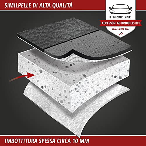 Materiale di alta qualità: Il coprisedile per auto colpisce per la sua lavorazione di alta qualità con finta pelle traforata. La laminazione aggiuntiva aumenta il comfort del sedile durante la guida.