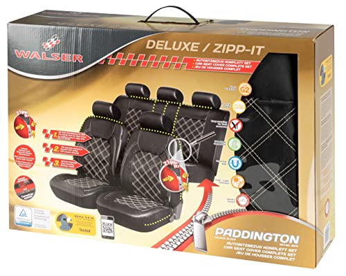 Walser Deluxe coprisedili Auto Paddington con Cerniera, Zipp-IT Car, Set Completo, 2 coprisedili Anteriori, 1 coprisedile Posteriore Nero 11979