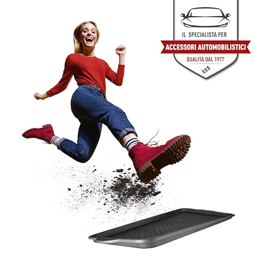 SUPERFICIE ANTISCIVOLO: la pratica superficie antiscivolo e le borchie del tappetino ne impediscono lo scivolamento. Ciò significa che le merci trasportate rimangono saldamente in posizione, ad esempio quando viene utilizzato come tappetino per il bagagliaio dell'auto. Se il gocciolatoio si sporca, può essere facilmente lavato con acqua.