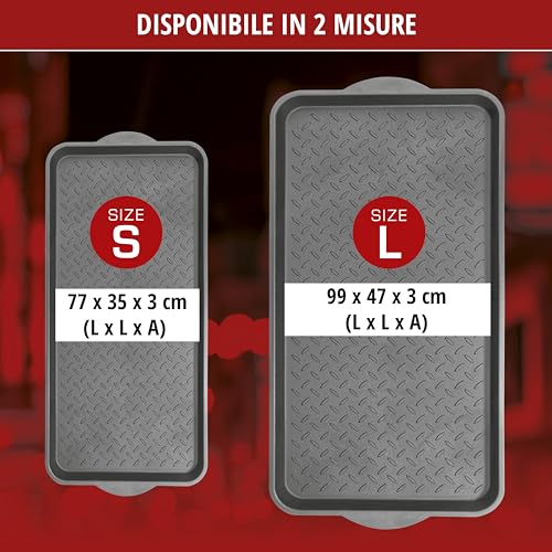 UTILIZZO VERSATILE: come vassoio per il bagagliaio dell'auto, tappetino antigoccia in garage, tappetino da officina per gli attrezzi, scarpiera nel guardaroba (3 o 5 paia di scarpe), tappetino per la ciotola degli animali domestici o tappetino antiscivolo per il trasporto, il versatile tappetino di raccolta evita il caos, mantiene l'ambiente circostante pulito e garantisce la massima protezione e ordine.