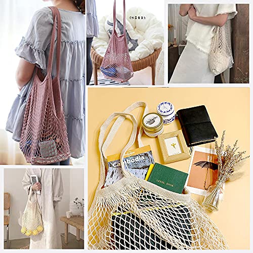 Leggere e Portatili: Queste borse in rete di puro cotone sono molto leggere e possono essere arrotolate e riposte in una borsa / tasca. Ha una maniglia lunga ed extra spessa, che renderà le tue spalle più comode.