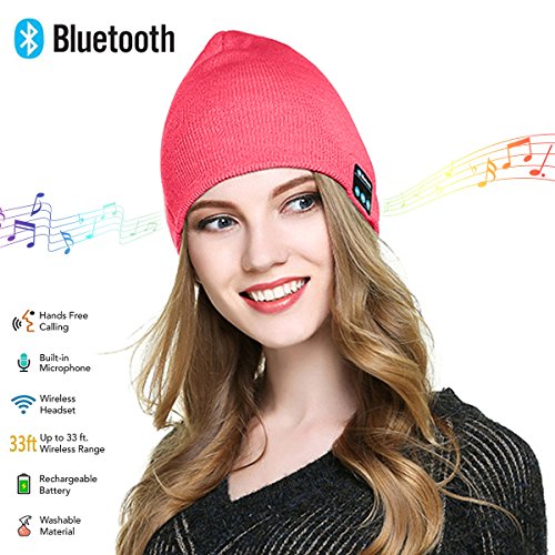 Walsilk Cappello Bluetooth,Cappello Auricolare Bluetooth, Cappello Beanie Musica,Cappello Maglia,con l'auricolare Bluetooth Senza fili,per correre,pattinare,passeggiare,regali Natale (Red)