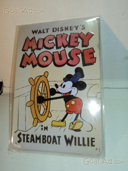 Walt Disney's - Insegna metallica originale anni "70 di Topolino,NUOVA,cm 32 x cm 21