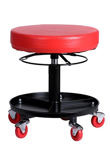 Sgabello per officina regolabile in altezza, robusto, con seduta imbottita.