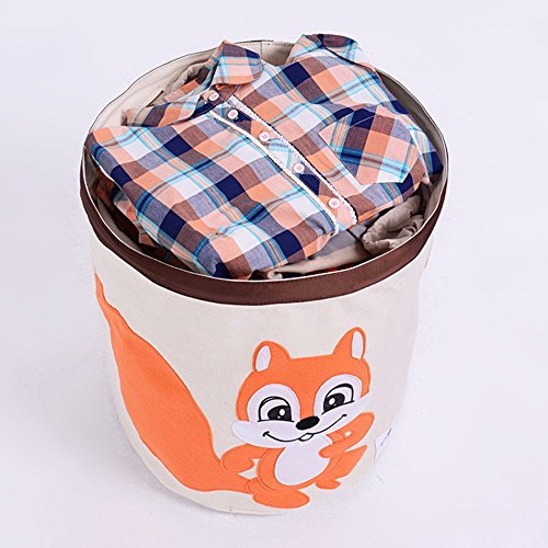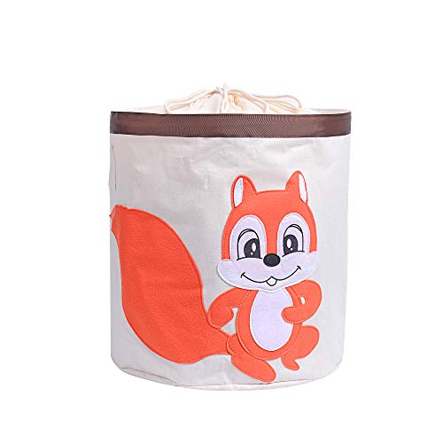 WANCR Grande Cesto portabiancheria Pieghevole, per i Giocattoli dei Bambini, con Coulisse, Impermeabile, Base Rotonda, in Cotone, Contenitore per la Camera da Letto Scoiattolo