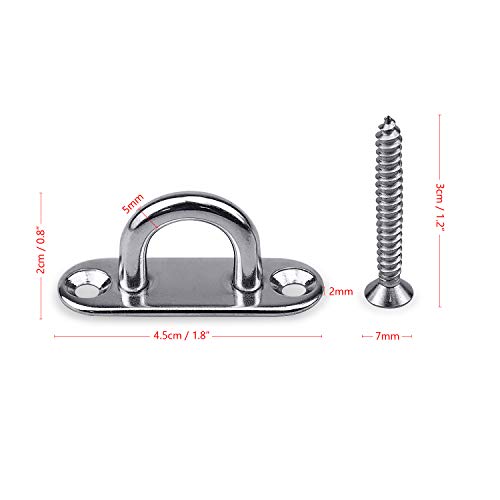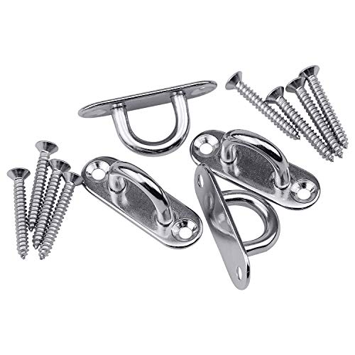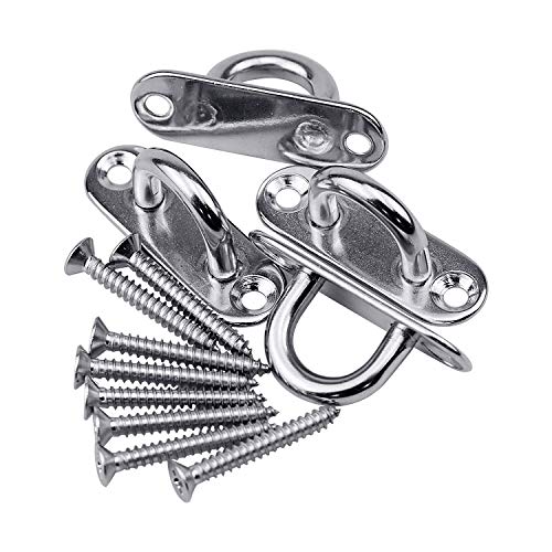 La confezione include: la confezione include 4 piastre con occhiello in acciaio inox e 4 moschettoni resistenti e 8 viti, ideali per arrampicata, sport e uso domestico.