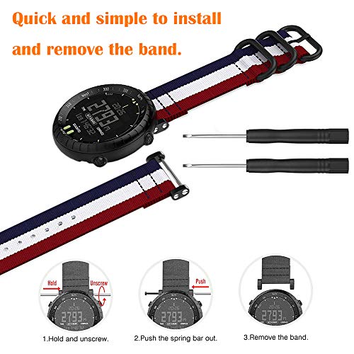 Wandeful Cinturino Compatibile per Suunto Core Cinturini, Nylon Cinturino di Ricambio Bracciale (Rosso/Bianco/Blu)