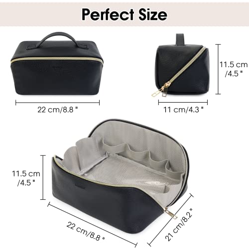 WANDF Borsa Cosmetica Portatile Si Apre Piatto Borsa dei trucchi da Viaggio Borsa per cosmetici Accessori Viaggio Organizzatore cosmetico Trousse Trucchi Donna Ragazze(Nero)