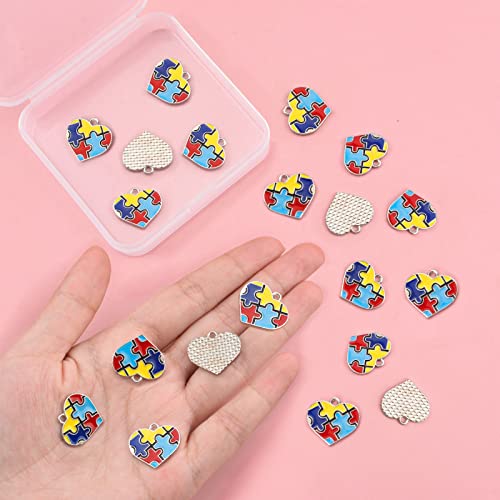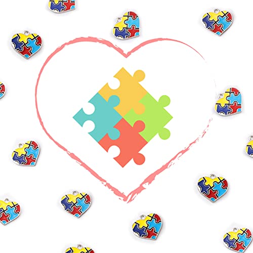 WANDIC Ciondoli per la consapevolezza dell'autismo a cuore, 20 pezzi, con anelli semi-aperti, design puzzle, per collane fai da te e braccialetti