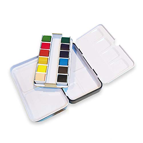 WANDIC, Custodia Vuota per acquerelli, in Latta, con 12 Mezze padelle per artisti, Studenti, acquerelli, Custodia da Viaggio