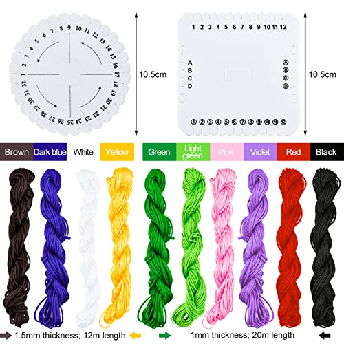 Confezione e dimensioni: questo set contiene 1 disco rotondo Kumihimo e 1 disco quadrato Kumihimo con 10 rotoli di braccialetti in 2 misure.