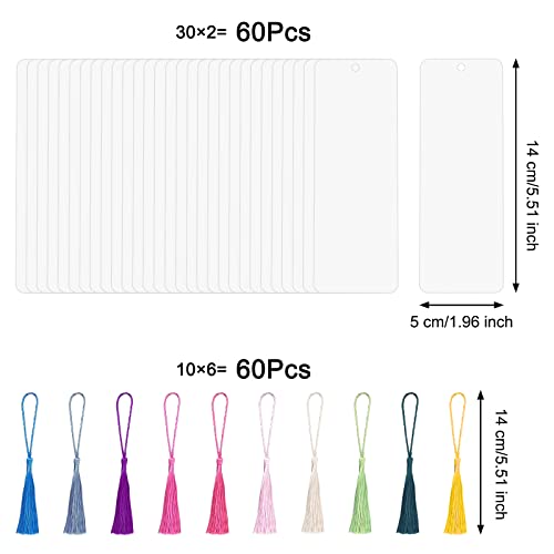 WANDIC Set di 60 segnalibri Bianchi, 60 segnalibri e 60 Pezzi con Nappe Colorate, per progetti Fai da Te, Regali
