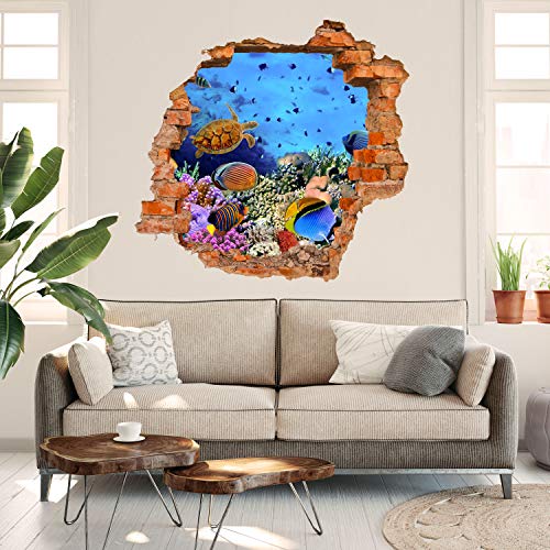 Wandmotiv24 Adesivo da Parete 3D Barriera corallina con Pesce, Design 02, 120x110cm (BxH), Decorazione, murale, Finestra, Apertura, varco M0480